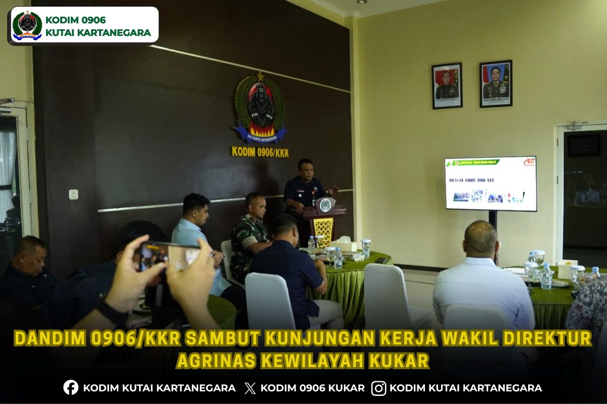 Kutai Kartanegara. suarainvestigasinegara.com- Kodim 0906/Kkr terima kunjungan kerja Mayjend TNI Tranggono, S.I.P., M.I.P selaku wakil direktur Agrinas bertempat di ruang Hall Makodim jalan KH Ahmad Muksin Kelurahan Timbau Kecamatan Tenggarong, dimana kedatangan rombongan Mayjend TNI Tranggono dalam rangka meninjau kegiatan pembangunan KDKMP yang ada di wilayah Kukar disambut langsung oleh Komandan Kodim 0906/Kkr Letkol Arm Benny Budiman beserta perwira staf dan para Danramil jajaran Kodim 0906/Kkr pada Kamis siang (9/4).