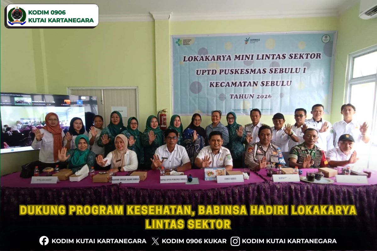 Kutai Kartanegara. suarainvestigasinegara.com- Dalam rangka mendukung peningkatan kualitas pelayanan kesehatan yang ada di wilayah binaan, Babinsa Koramil 0906-07/Sebulu Serka Eko Agus hadiri kegiatan lokakarya mini lintas sektor yang diselenggarakan oleh pihak puskesmas bertempat di kantor Pusban Desa Giri Agung Kecamatan Sebulu, Kamis 9/4/26.