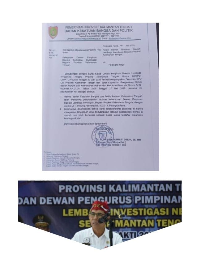 Lebih jauh, Wiratmoko mengungkapkan bahwa Kesbangpol Provinsi Kalteng sudah menerima pemberitahuan resmi LIN pada 28 Juli 2025.