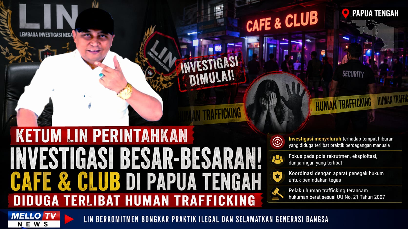 Papua Tengah — Dugaan praktik human trafficking atau perdagangan manusia di wilayah Papua Tengah kini menjadi sorotan serius. Ketua Umum Lembaga Investigasi Negara (LIN) secara resmi mengeluarkan instruksi tegas kepada jajaran Dewan Pimpinan Daerah (DPD) LIN Papua Tengah untuk segera melakukan investigasi menyeluruh terhadap sejumlah tempat hiburan malam, termasuk cafe dan club yang diduga menjadi lokasi praktik ilegal tersebut.