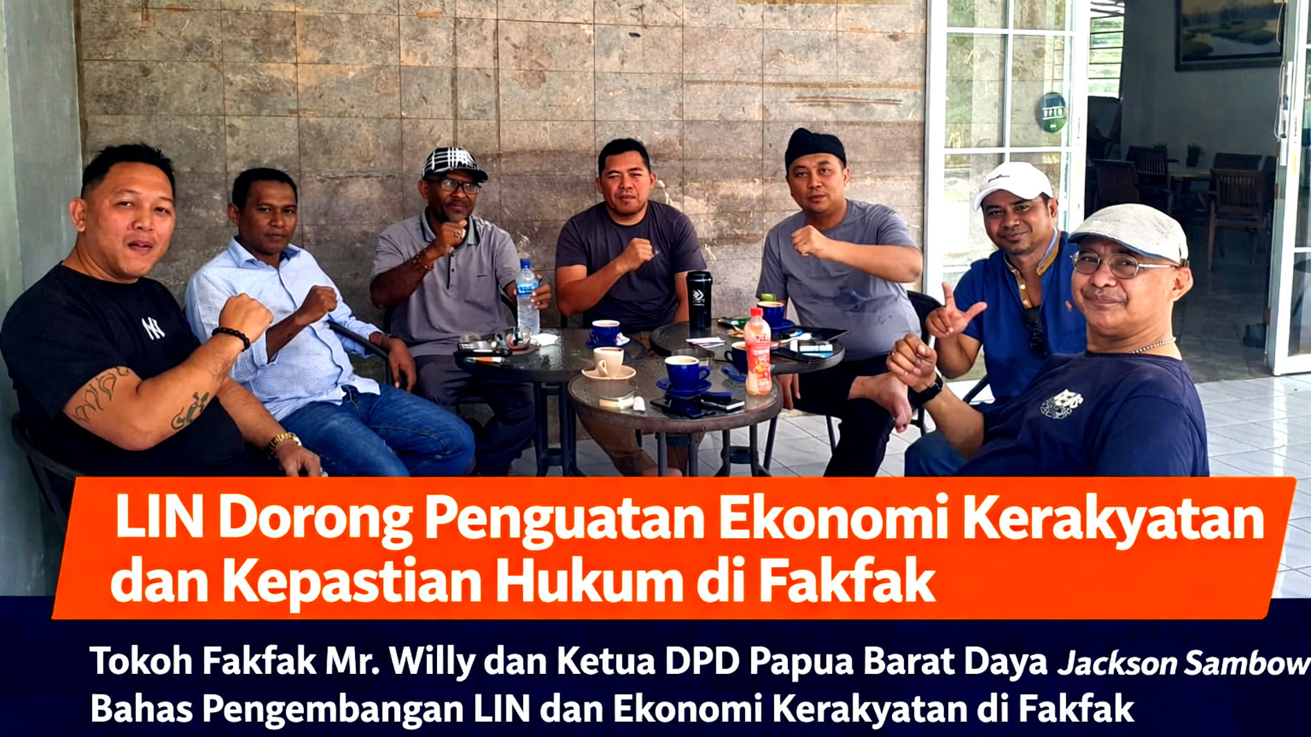 Fakfak — Tokoh masyarakat Fakfak, Mr. Willy, menghadiri agenda silaturahmi bersama Ketua DPD Papua Barat Daya, Jackson Sambow, dalam rangka membahas pengembangan Lembaga Investigasi Negara (LIN) di wilayah Fakfak, Provinsi Papua Barat.