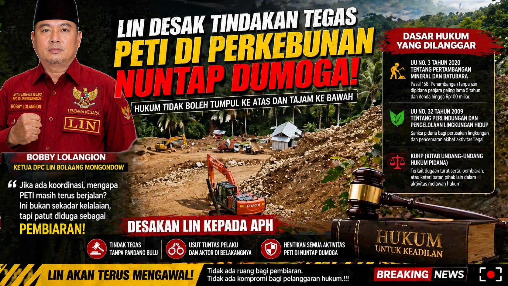 LIN mendesak Aparat Penegak Hukum (APH) untuk tidak hanya hadir dalam narasi, tetapi benar-benar bertindak nyata.