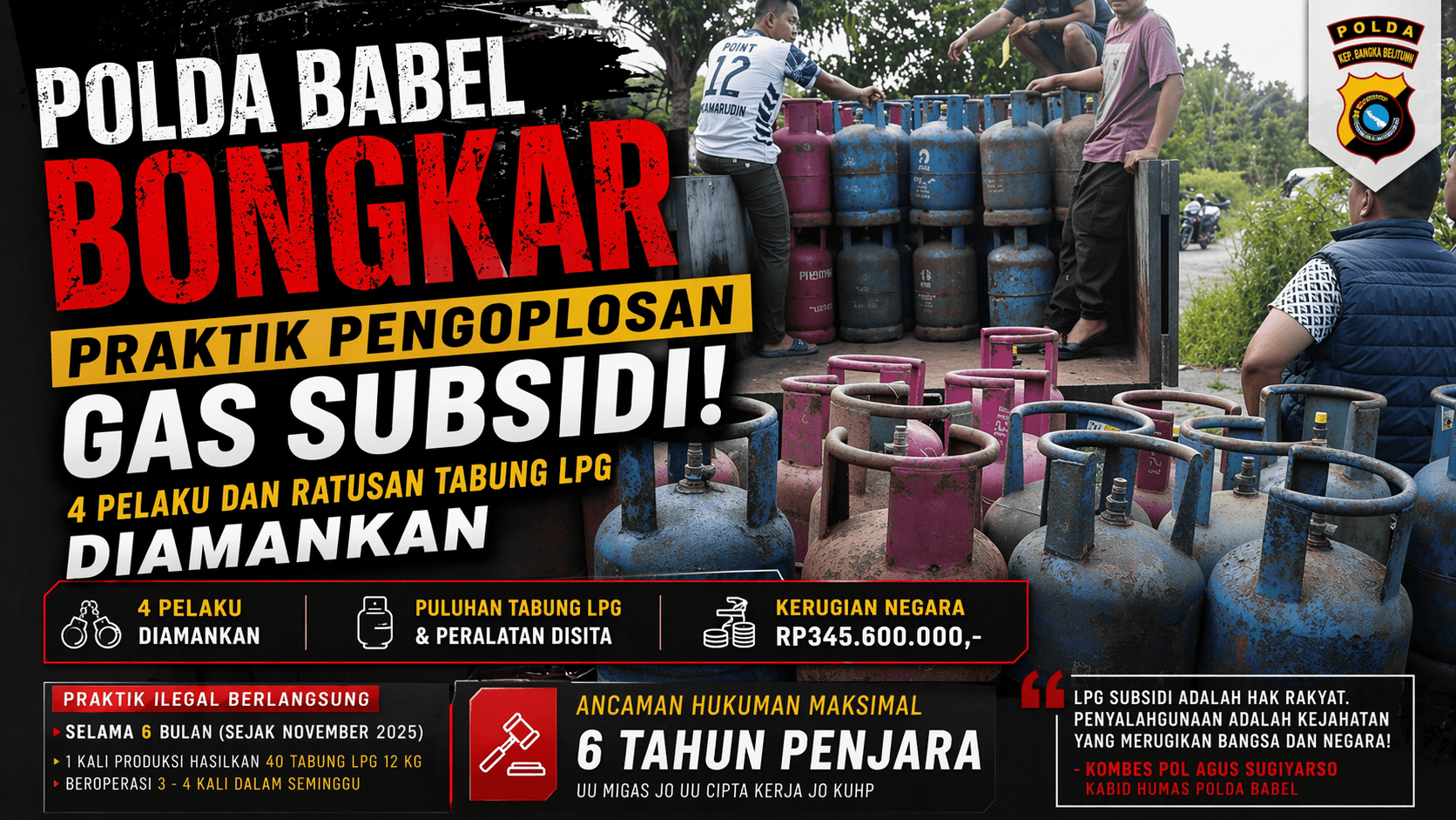 Kabid Humas Polda Babel, Kombes Pol Agus Sugiyarso, menegaskan bahwa praktik pengoplosan LPG subsidi merupakan kejahatan serius.