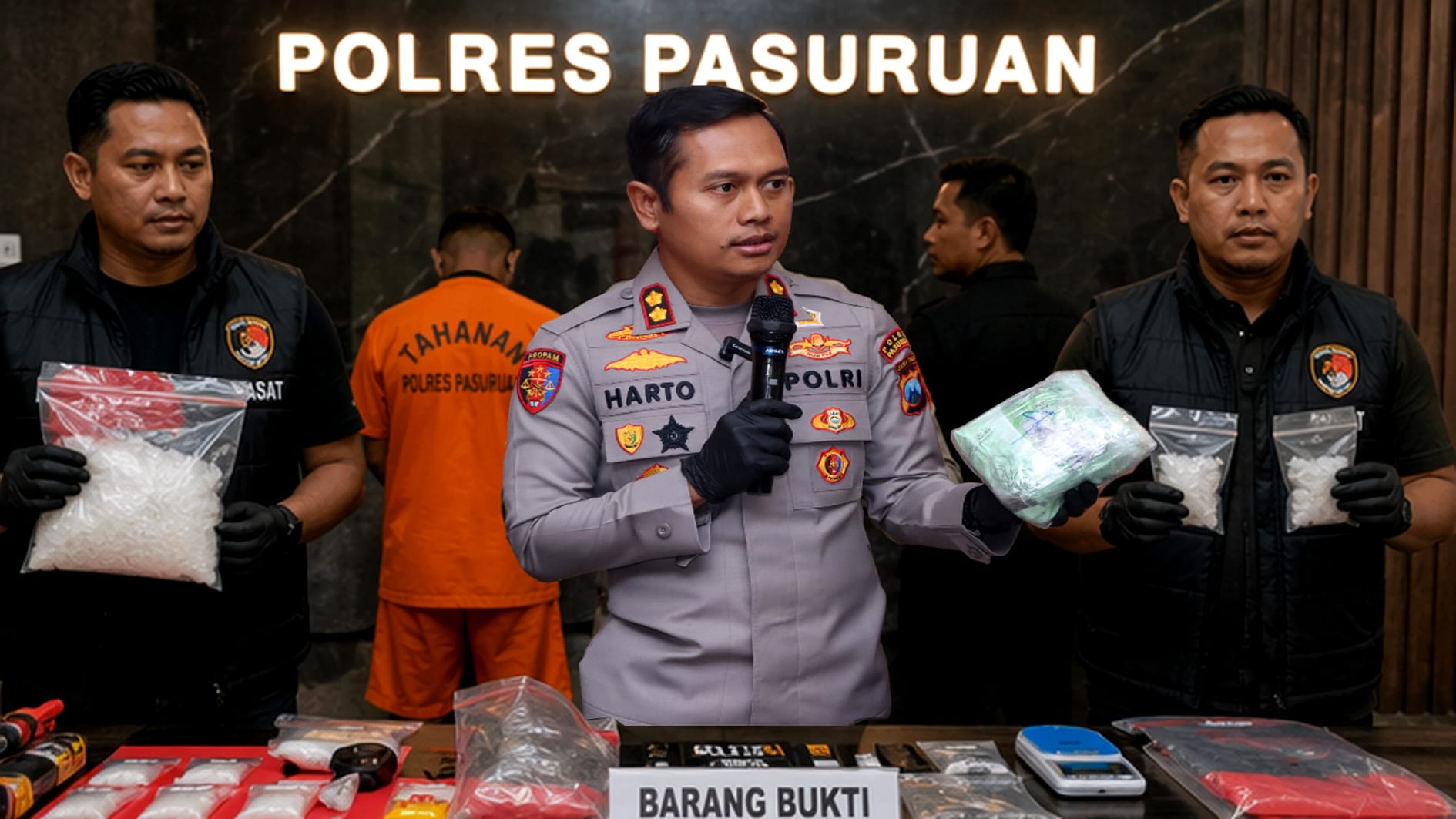 Kapolres Pasuruan, Harto Agung Cahyono, menegaskan bahwa pihaknya tidak akan memberi ruang bagi peredaran narkotika di wilayah hukumnya.