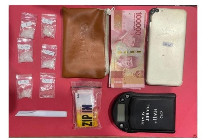 Dalam penggerebekan tersebut, petugas menemukan enam kantong plastik kecil berisi narkotika golongan I jenis sabu dengan berat total netto 3,764 gram. Selain itu, polisi turut mengamankan sejumlah barang bukti lainnya berupa: