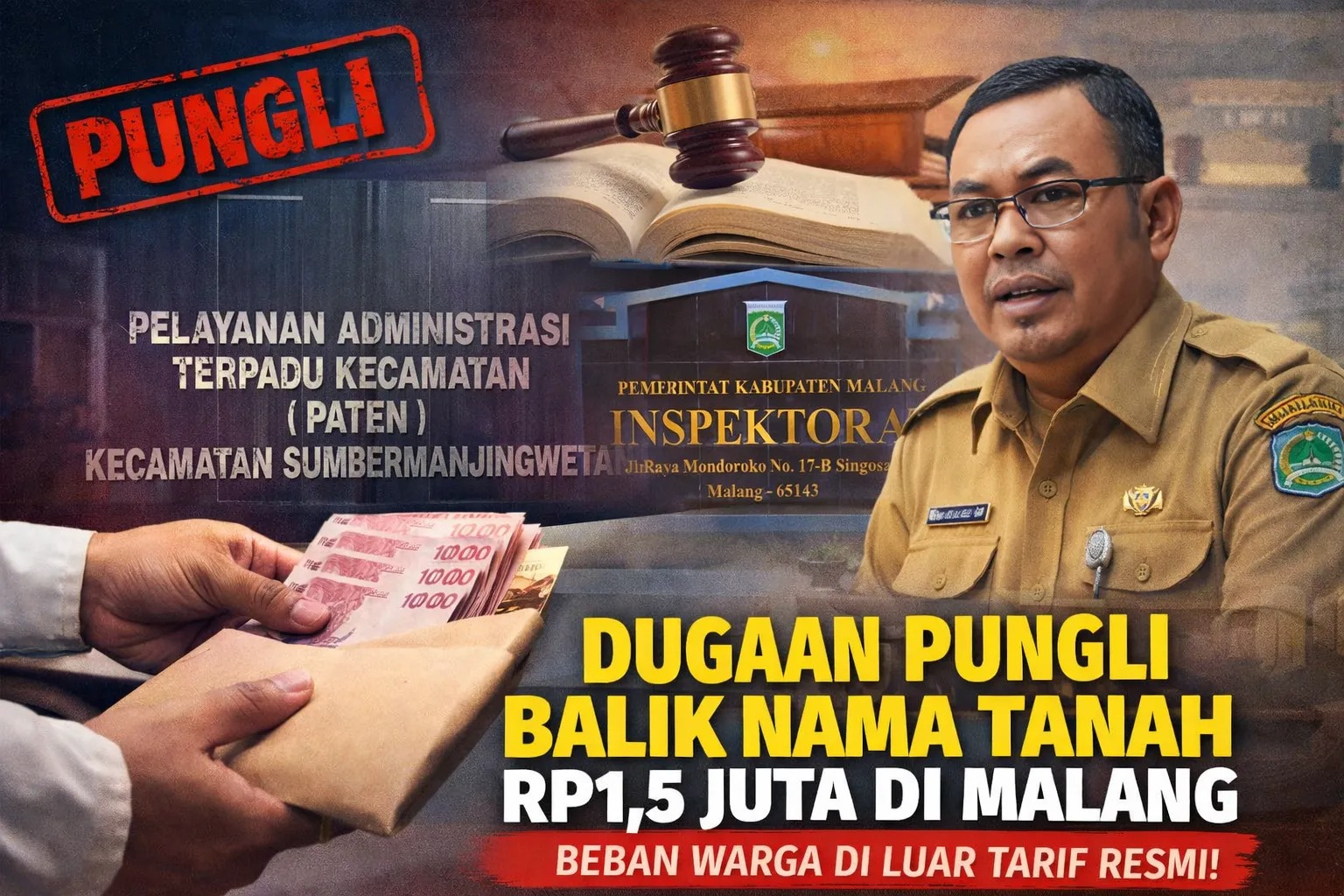 Malang, – Dugaan pungutan liar (pungli) dalam proses balik nama tanah di Desa Kedungbanteng, Kecamatan Sumbermanjing Wetan (Sumawe), Kabupaten Malang, mulai terkuak.