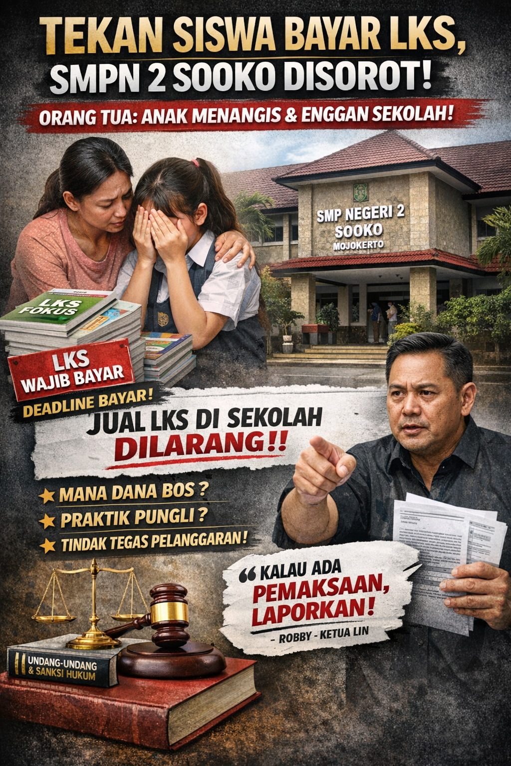 “Jika benar ada pemaksaan pembelian LKS, itu termasuk pungutan liar. Kami mendorong orang tua melapor ke Dinas Pendidikan agar praktik seperti ini tidak terjadi lagi di sekolah-sekolah Mojokerto Raya,” tegasnya.